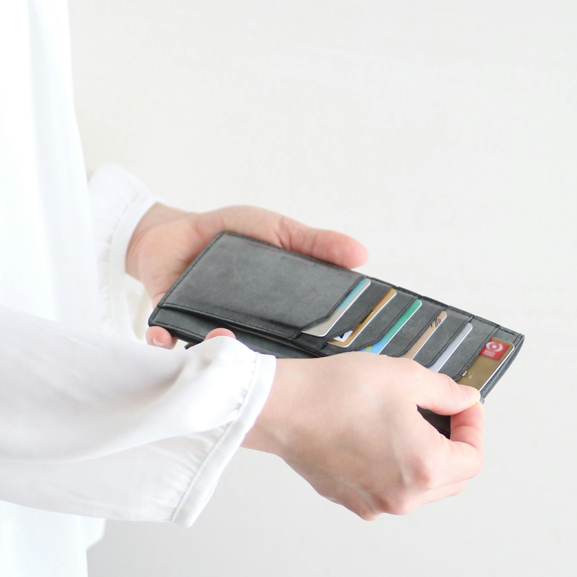 ①キャッシュレス時代の薄く小さい長財布!!17.2cm×8.5cmの極小サイズなのに使いやすくて大容量!